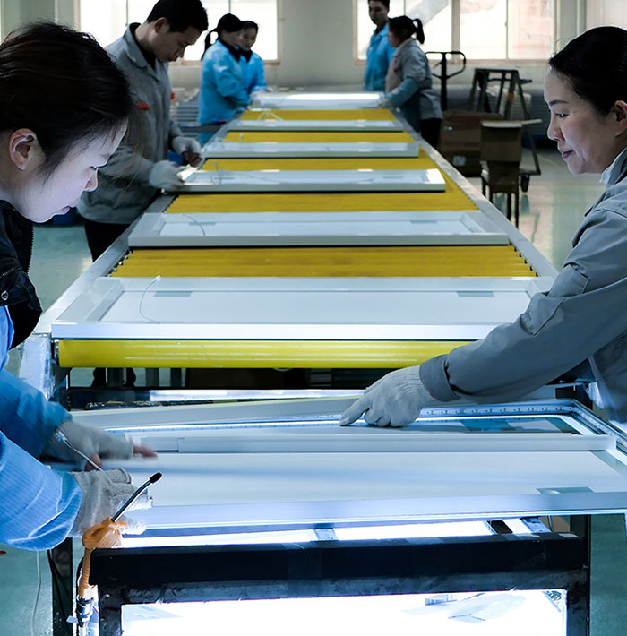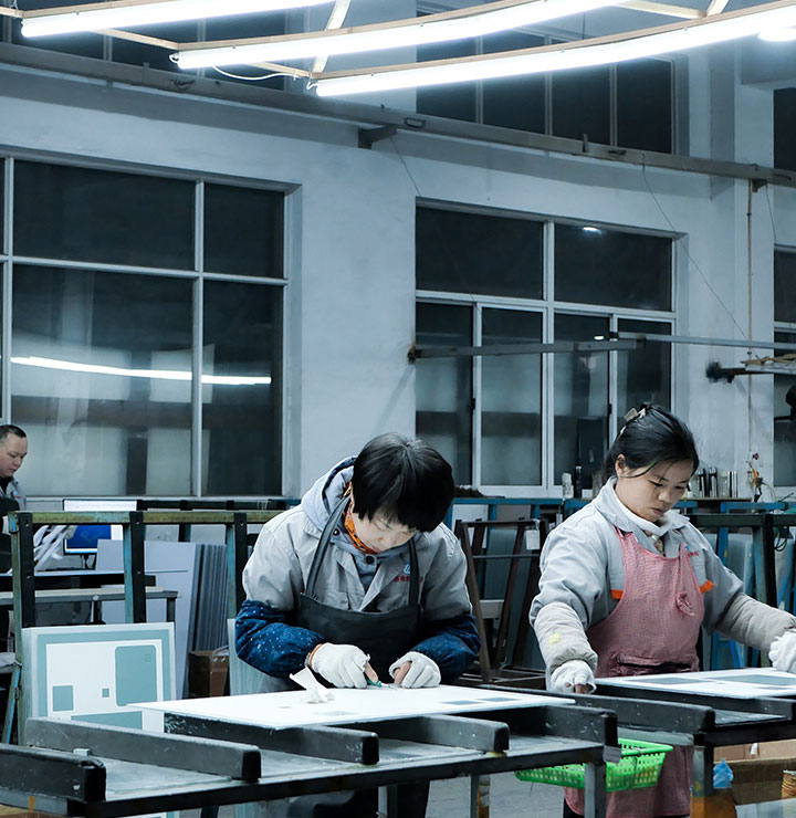 Integration of cutting,coating,assembling and wiring under one roof with independent glass hardware processing and assembling workshop.