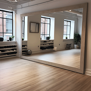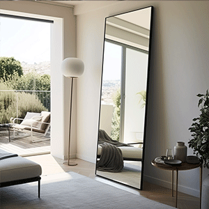 Installationswinkel: Wenn ein Ganzkörperspiegel nicht perfekt senkrecht montiert ist, kann er das Spiegelbild verzerren. Eine leichte Neigung nach vorne oder hinten kann das reflektierte Bild verlängern oder komprimieren, wodurch der Betrachter möglicherweise schlanker oder breiter erscheint.