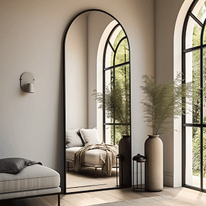 Diese Art von Spiegel zeichnet sich durch eine gewölbte Oberseite aus, die jedem Raum ein elegantes und architektonisches Element verleiht. Er ist perfekt für Räume, denen Sie einen Hauch von Raffinesse verleihen möchten. Ein gewölbter Spiegel eignet sich sowohl für moderne als auch für klassische Innenräume und kann als Blickfang in Ihrem Zimmer dienen.