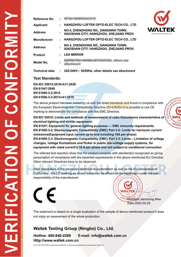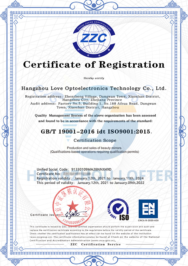 Essais rigoureux en interne des miroirs pour la durabilité, la performance de l'éclairage et la sécurité avec 2 groupes de l'équipe de R&D électrique et 4 QCS.