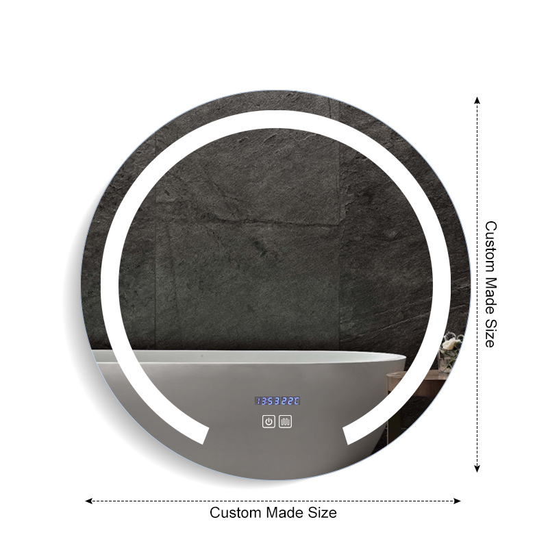 Un miroir de salle de bains rond avec éclairage LED est un choix élégant et fonctionnel pour éclairer votre salle de bains. Voici les principales caractéristiques d'un miroir de salle de bains rond avec éclairage LED:Design circulaire : La forme ronde du miroir ajoute un élément contemporain et visuellement attrayant au décor de votre salle de bains. Il offre une esthétique douce et équilibrée qui s'harmonise avec différents styles d'intérieur.Eclairage LED : Les lumières LED sont intégrées dans le cadre ou le périmètre du miroir, fournissant un éclairage uniforme et efficace. Les lumières LED sont connues pour leur efficacité énergétique, leur longue durée de vie et leur faible émission de chaleur. Elles produisent un éclairage clair et lumineux, idéal pour les tâches telles que le maquillage ou le rasage.Éclairage réglable : De nombreux miroirs de salle de bains ronds avec éclairage LED sont dotés d'un éclairage réglable. Vous pouvez ainsi contrôler la luminosité et parfois la température de couleur de la lumière, ce qui vous permet de créer l'ambiance parfaite et de répondre à différents besoins en matière d'éclairage.Tampon de désembuage intégré : Certains modèles peuvent être équipés d'un tampon désembueur intégré, qui empêche le miroir de s'embuer lorsqu'il est exposé à la vapeur ou à l'humidité. Cette fonction garantit un reflet clair, même dans une salle de bains embuée.