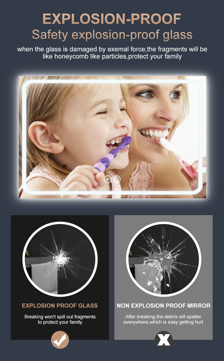 サンドブラスト仕上げのベーシックなフレームレス壁掛けバックライト付LEDバスルームミラーです。形はシンプルでモダン。明るさの調節と3つの色温度オプションで、空間に余分な環境光を追加することにより、あなたのバスルームのニーズの経験をアップグレードするためにカスタマイズすることができます。また、曇り止めやメモリー機能を追加することもできます。IP44の防水性能により、濡れた環境でも耐久性があります。