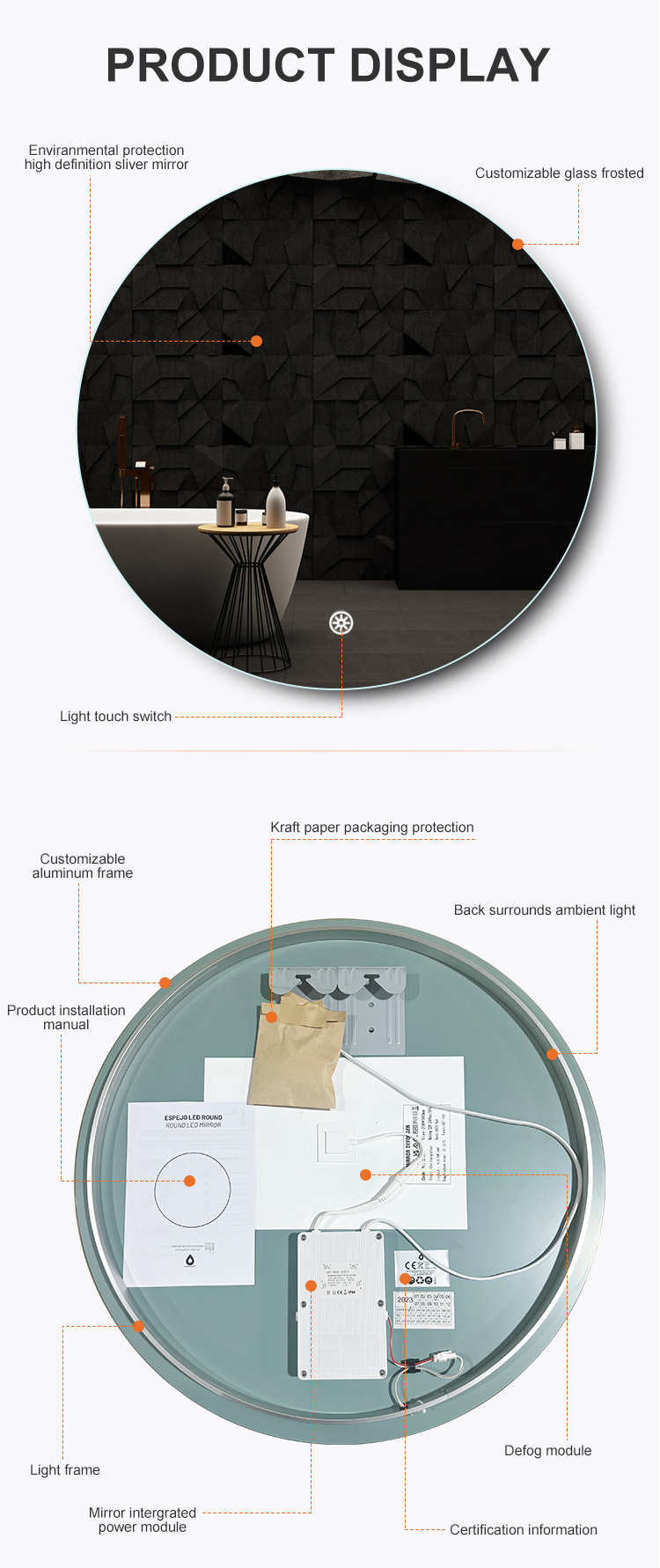ロフターは水の波紋の美しさに着目し、このスタイルをLEDバスルームミラーに取り入れました。スタイルと機能を兼ね備えた作品です。内側のフレームはアルミニウム製で、丸みを帯びたデザインとモダンなつや消し仕上げ。内蔵されたLEDはボタンひとつで点灯し、グルーミングや髭剃りの際に空間に明るさをもたらします。また、色温度や機能をカスタマイズできるので、お好みのシーンを簡単に演出できます。